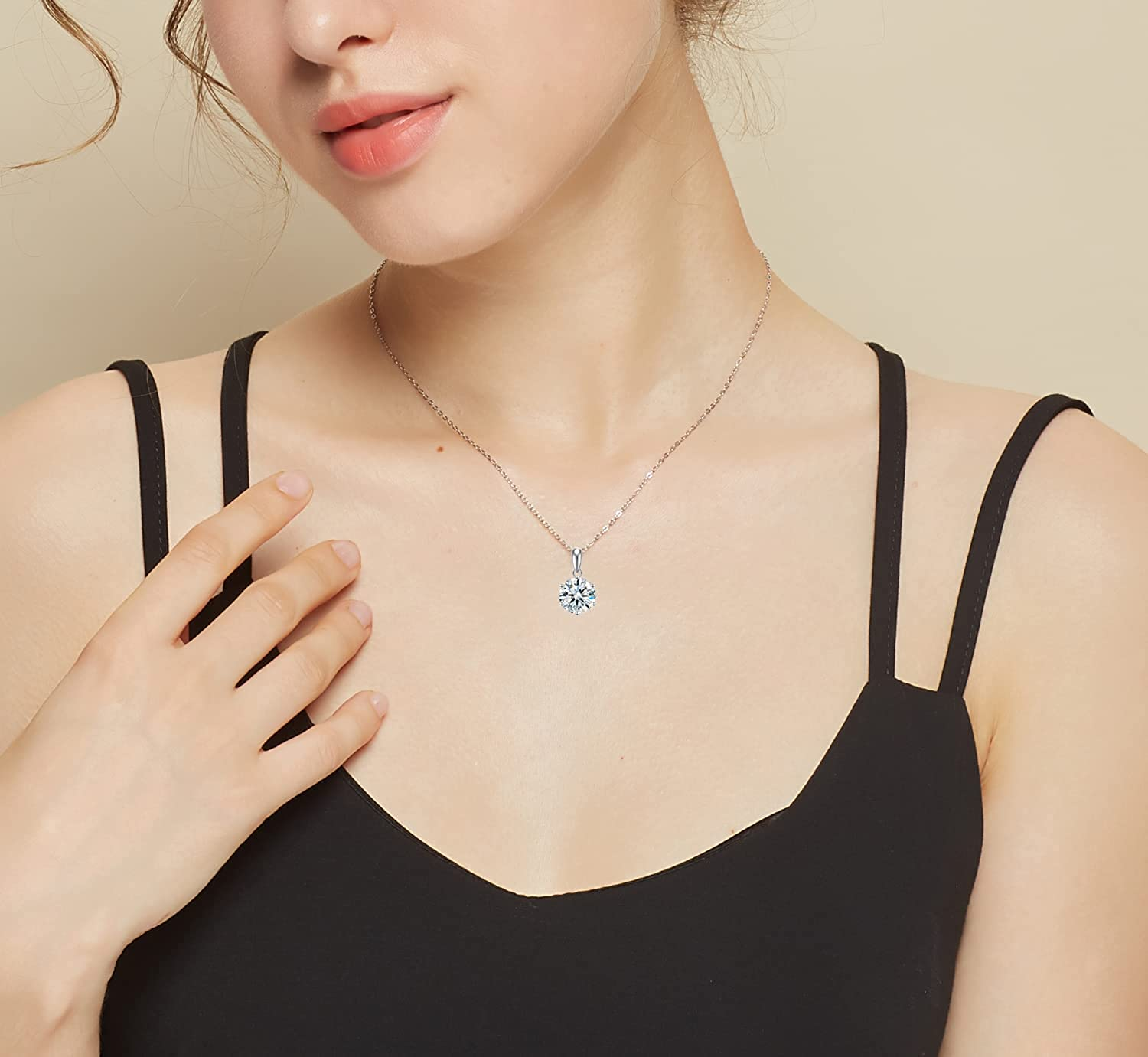 2CT Moissanite Pendant Necklace 18K White Gold Plated Silver D Color Ideal Cut Diamond Necklace for Women with Certificate of Authenticity