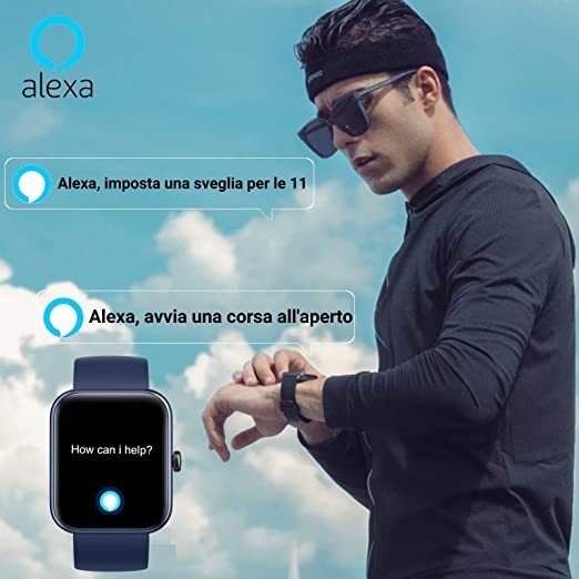 HOAIYO Smart Watch for Health and Fitness, Alexa Built-in, Heart Rate, Music, Sleep, Blood Oxygen Monitor, 5ATM Waterproof Swim Tracking, for iPhone Android Phones, Men's Women (Blue, 1.7 Inch)